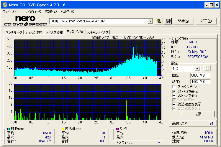 | ドライブ | NEC ND-4570A |
