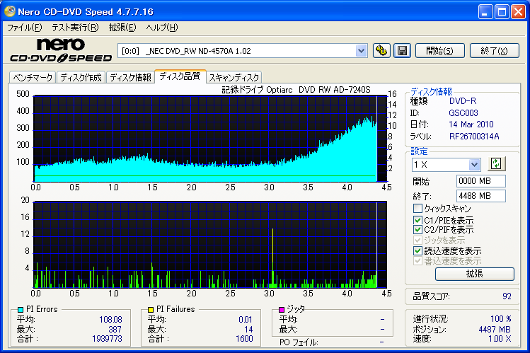 | その他 | PCデータの書き込み。ベリファイOK。 |