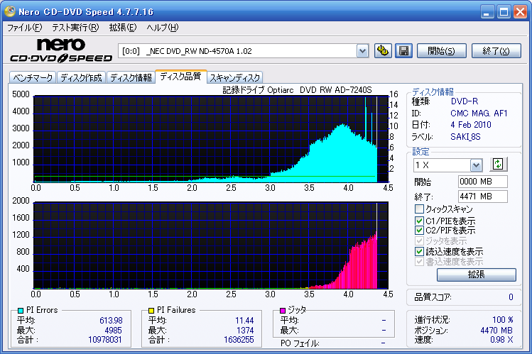 | その他 | PCデータの書き込み。ベリファイOK。 |
