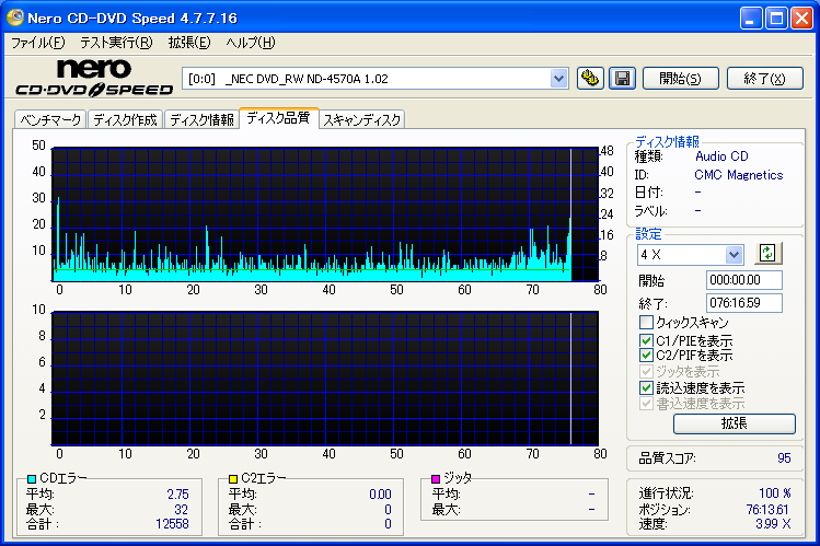 | その他 | 音楽CDの書き込み。ベリファイOK。 |